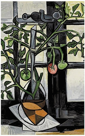 1944年夏天,畢加索與情人瑪麗·特雷斯生活在還處于納粹占領中的法國巴黎,有一天,他為家中窗臺上的番茄植物畫了一幅靜物,既反映了當時食物緊缺、人們不得不自己種植農產品的現實,同時還以富有生機的色彩和成熟果實的意向表達了人們強烈的意志力。那個時候,番茄是這座城市窗臺和陽臺上最常見的東西。