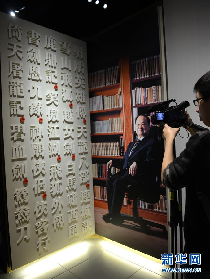2月28日,媒體記者在“金庸館”的入口處拍攝。當日,香港首個以著名武俠小說家金庸為主題的常設展館——“金庸館”在香港文化博物館揭幕,將于3月1日正式與市民見面。展館內(nèi)共展出珍貴手稿、照片、早期小說版本以及各類水墨畫等300多項展品,介紹金庸的早期事業(yè)、武俠小說創(chuàng)作歷程及其小說對香港流行文化的影響。秦晴攝