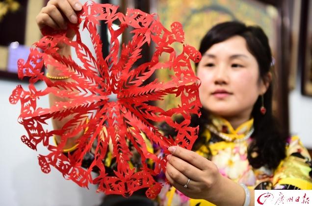 千件大師作品亮相廣州 2017年3月1日,第52屆全國(guó)工藝品交易會(huì)開(kāi)幕式中國(guó)進(jìn)出口商品交易會(huì)展館舉行。圖為:佛山剪紙。廣報(bào)全媒體記者王燕 攝 曾衛(wèi)康文