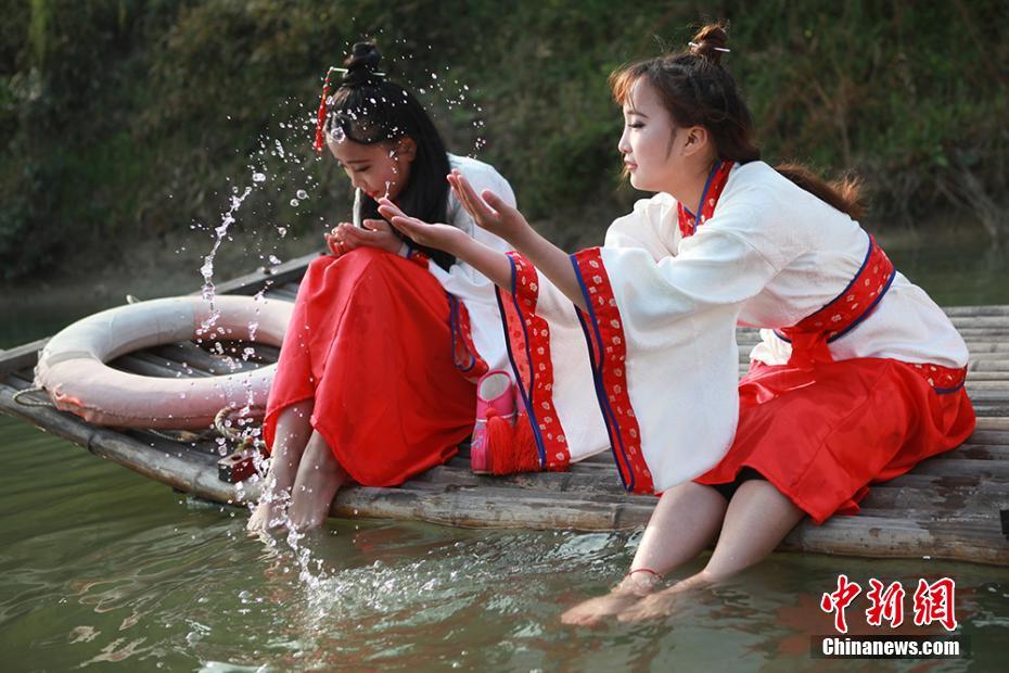 3月29日,一場重現(xiàn)中國古代春秋時(shí)期上巳節(jié)“曲水流觴、臨水浮卵、水上浮棗”風(fēng)俗的活動(dòng)在江蘇常州淹城春秋樂園內(nèi)上演。據(jù)記載,在上述三種水上活動(dòng)中,以臨水浮卵最為古老,它是將煮熟的雞蛋放在河水中,任其浮移,誰拾到誰食之。水上浮棗和曲水流觴則是由臨水浮卵演變來的。