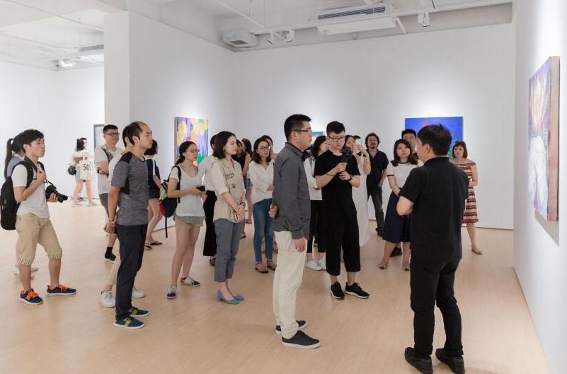 藝術(shù)家王頃給觀眾介紹作品