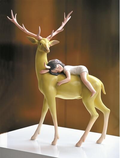 賈曉鷗作品《悅悅》。以天使少女為形象的悅悅代表著喜悅,包含著童話的美感,又?jǐn)y帶著對(duì)未來的憧憬與希冀。