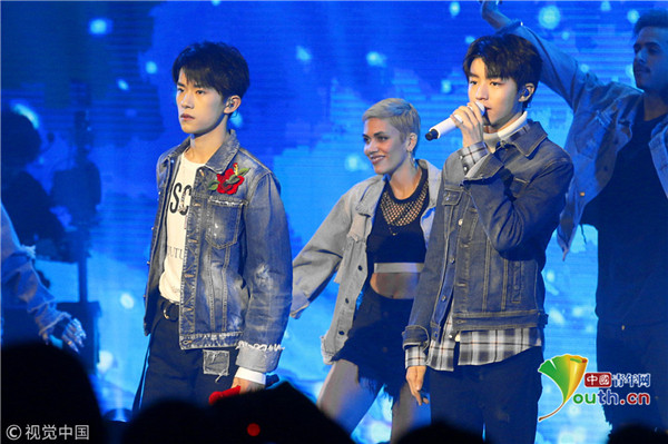 ??? 北京,12月12日晚,王俊凱、易烊千璽現(xiàn)身某活動,兩人身穿牛仔外套獻(xiàn)唱嗨翻全場,又換上紅色衛(wèi)衣舉廣告宣傳標(biāo)語