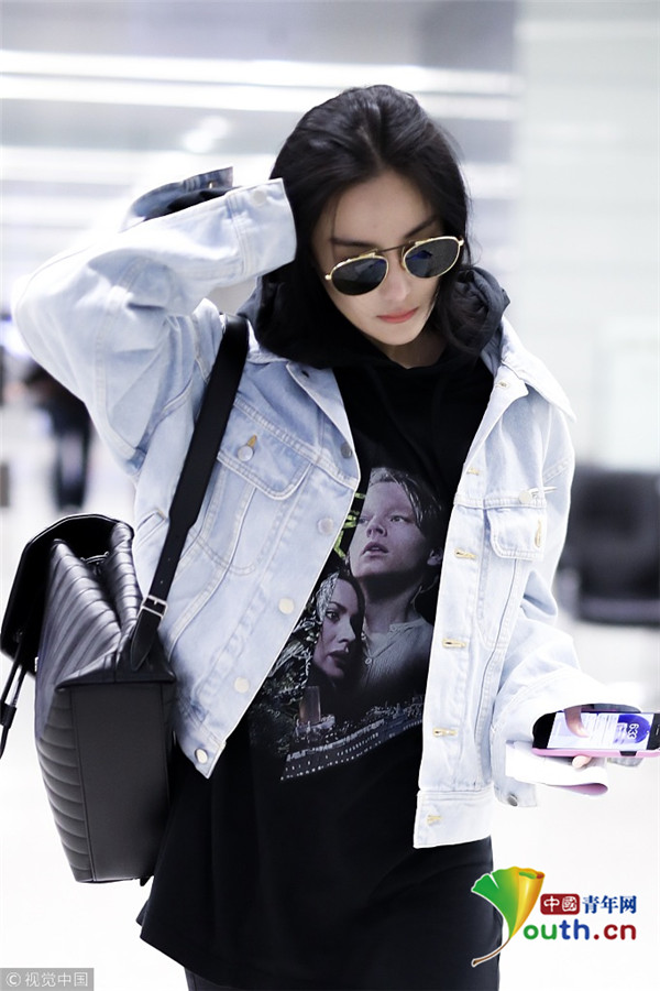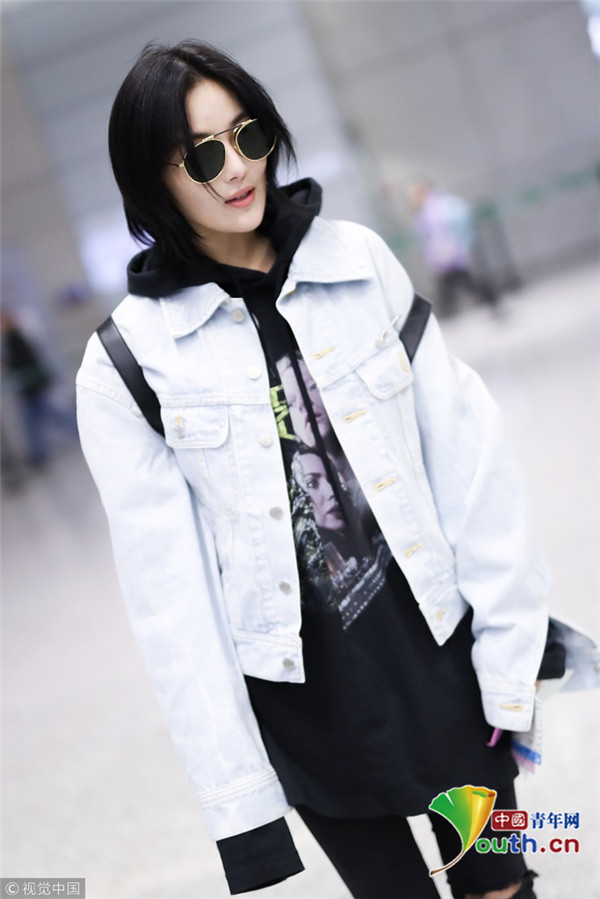 2017年12月13日,上海,張馨予現(xiàn)身機(jī)場(chǎng),穿連帽衣顯清爽,剪短發(fā)架黑超形似王菲,歪頭撩發(fā)又帥又酷。