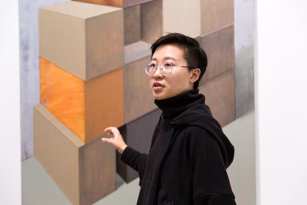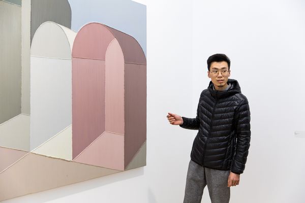 藝術(shù)家趙新宇,1989年出生于內(nèi)蒙古,2012年畢業(yè)于四川美術(shù)學(xué)院油畫系。趙新宇最早的創(chuàng)作,即為人所知的“車廂”系列,涉及了一種日常經(jīng)驗(yàn),后續(xù)階段的作品以情緒性和敘事性為底色,而使得整個(gè)畫面頗具戲劇色彩。在新作當(dāng)中,這一痕跡的延伸則是趙新宇似乎試圖通過(guò)對(duì)畫面結(jié)構(gòu)的編排,對(duì)比之前的作品,依舊是在構(gòu)景,但卻在逐漸在取締物的現(xiàn)實(shí)性因素。新作當(dāng)中技法的轉(zhuǎn)變,厚涂式的平推僅保留了一部分,新作當(dāng)中的轉(zhuǎn)向在某種程度上僅僅構(gòu)成了對(duì)于厚涂畫法的一個(gè)對(duì)立面發(fā)生,像是一次新的開場(chǎng),畫面本體基本問(wèn)題再次噴涌而來(lái),在這一情形下,趙新宇通過(guò)對(duì)于框架結(jié)構(gòu)式描繪的轉(zhuǎn)向,試圖引向一種對(duì)于畫面心理的感知。