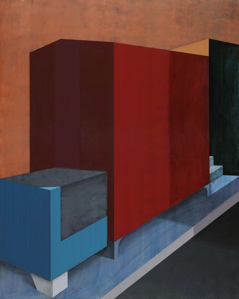 趙新宇從以往的作品中提取出了作品畫面的三個(gè)基本空間模型,“凹”“凸”“平”,并且在此次個(gè)展作品當(dāng)中非??桃獾囊载Q構(gòu)圖來(lái)強(qiáng)化這一理式概念,甚至試圖探究以往作品如果以一種“剩余”的狀態(tài)呈現(xiàn),意義生成的核心會(huì)發(fā)生怎樣的轉(zhuǎn)變?!妒彝?1垂直,傾斜》右下角垃圾箱輪子的處理,是以暗色塊暗示了原物的形態(tài),并沒(méi)有再做深入的刻畫,而實(shí)際上這一形態(tài)往往是作品底層的保留;《室外#3》右上部,你可以說(shuō)是割破了的畫面,或者是基于無(wú)意識(shí)的,總之對(duì)于結(jié)構(gòu)穩(wěn)定的畫面而言,像極了一次意外的產(chǎn)物。在某種意義上它超越了象征界,也即超越了經(jīng)驗(yàn)所能夠涵蓋的內(nèi)容。但是新作當(dāng)中似乎更有新的趨向,比如《室外#3》和《室外#4》兩件作品,一件觸及畫面的變形,另一件暖色調(diào)的嘗試則引發(fā)了某種藉里科式的憂郁,或許這是匱乏和剩余的并發(fā)癥,某種飄散的內(nèi)容甚至帶給人一種訴諸作品本身相反的感受。