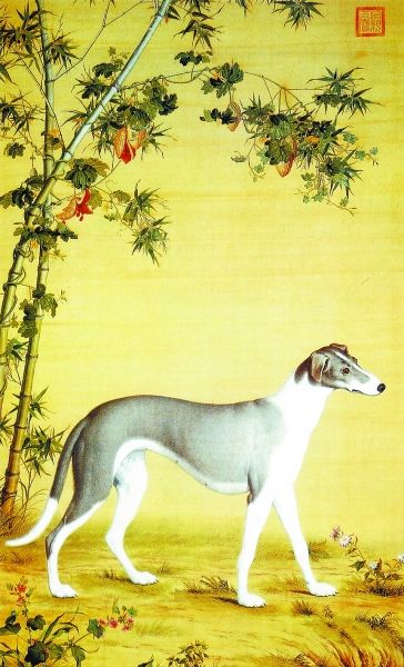 自宋代始花鳥畫獲得空前發(fā)展,皇家畫院極盛,追求精工寫實,動物畫這時得以獨立出來,單獨的犬畫開始出現(xiàn),現(xiàn)藏于北京故宮的宋李迪《獵犬圖》即是一幅不可多得的作品。他畫的《獵犬圖》造型比例精確,明暗層次清晰,立體感極強(qiáng),犬的神態(tài)與動態(tài)尤其傳神,將獵犬盯視前方漫步而行的感覺刻畫得入木三分,堪稱形神俱佳之作??梢钥闯霎嫾也粌H具有高超的繪畫表現(xiàn)技巧,對狗的生活習(xí)性也有很深的了解,該作品體現(xiàn)了宋代畫家的非凡寫實功力與水平?!澳纤嗡募摇敝坏膭⑺赡暝嬤^一幅風(fēng)俗畫《補(bǔ)納圖》,畫中一老僧正在專注穿針引線補(bǔ)綴,床榻前一小狗席地而臥,似仰頭目視主人,小狗的刻畫堪稱神來之筆,寥寥幾筆勾勒,狗便活脫而出。
