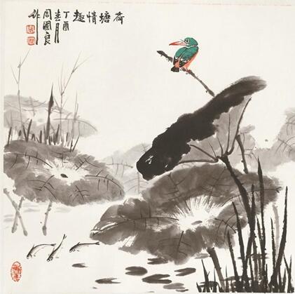 周國良,生于1945年,是周懷民之幼子。他自幼在父親的指導(dǎo)教育下從事書法繪畫學(xué)習(xí),特有的條件和環(huán)境使他有更多機會觀賞臨摹歷代名作真跡,奠定了扎實的藝術(shù)功底。上世紀(jì)70年代初,他師承上海著名畫家吳青霞研習(xí)鯉魚、花鳥,擅長山水、花鳥,尤以鯉魚著稱。從藝四十余載,周國良勤奮耕耘,堅持寫生,足跡遍及祖國大江南北、名山大川,在繪畫中既能保持中國畫傳統(tǒng)技法,又有新的創(chuàng)意,形成獨特風(fēng)格。