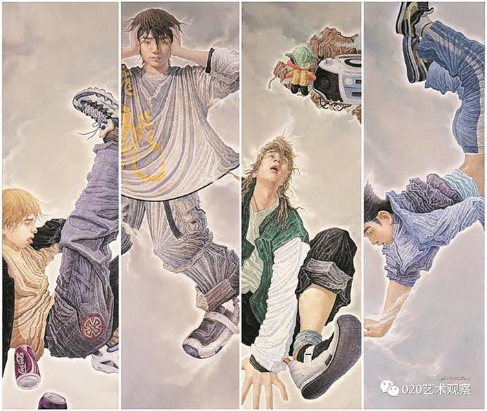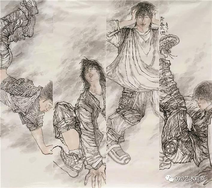據(jù)悉,原作正是深圳市福田區(qū)美術(shù)家協(xié)會主席張闖《2004—街舞》布面油彩,有所不同的是涉嫌抄襲的作品是國畫。從細(xì)節(jié)對比上看,作品相似度極高。此外,涉嫌抄襲的作品的方向與張闖的原作相反。有人猜測,涉嫌抄襲的作者是將張闖《2004—街舞》通過電腦制作反轉(zhuǎn)過來,或者是投影后制作完成作品的。