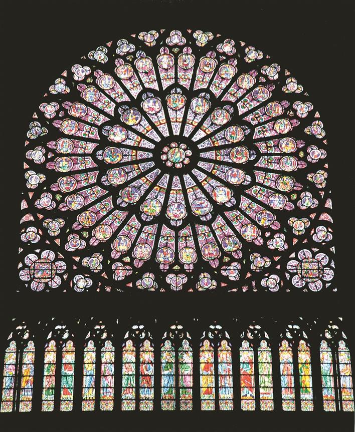 彩繪玻璃花窗“玫瑰花窗”也是巴黎圣母院內(nèi)的重要文物。18世紀(jì),巴黎圣母院在路易十四統(tǒng)治時(shí)期經(jīng)歷了一次大修,12世紀(jì)留下的彩色玻璃窗被換成了透明玻璃窗,只有三扇玫瑰彩色玻璃窗被保留下來,也成為圣母院如今的著名景觀之一。在雨果的小說《巴黎圣母院》熱銷后,巴黎民眾和政府官員開始呼吁對(duì)這一“寶藏”進(jìn)行修復(fù)。1844年,在建筑大師維歐勒·勒·杜克的帶領(lǐng)下,修復(fù)了圣母院的西立面、國王畫廊,還添加了十二圣徒雕塑以及圣母院屋檐上著名的怪獸雕塑。