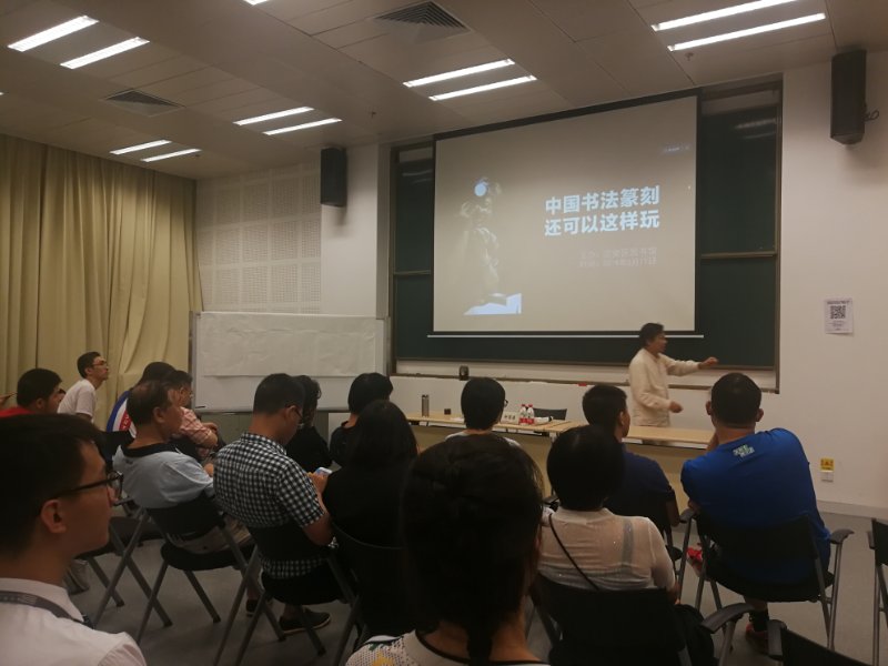 在2個(gè)小時(shí)的講座中,鐘國康妙語連珠,用生動幽默的語言將博大精深的書法篆刻文化表現(xiàn)得淋漓盡致,講座現(xiàn)場掌聲連連。鐘國康認(rèn)為,書法篆刻之術(shù),只有筆性、墨性、石性、紙性、心性,全方位嚴(yán)謹(jǐn),筆力勁駿,心手相應(yīng),技藝熟練,才能做到庖丁解牛,勢如破竹,可進(jìn)可退,正可謂“惟習(xí)之至熟,自可心手相應(yīng)”。他還現(xiàn)場潑墨揮毫,演示篆書的寫法,詳細(xì)講解并現(xiàn)場演示了篆刻的方法,重點(diǎn)分享自己在單刀法和雙刀法上的獨(dú)特見解。單刀法要“有多狠刻多狠,有多猛刻多猛,有多深刻多深,有多長線條刻多長線條”,而雙刀法即在“單刀之回馬槍重刻一遍相反之單刀法”。一些幸運(yùn)的書法、篆刻愛好者還通過搶答的方式,獲贈書法篆刻作品。(通訊員 孫善文)