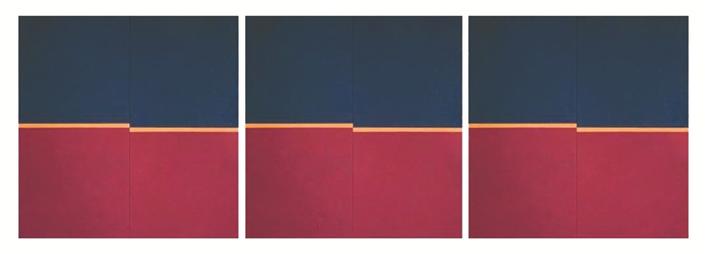 此次展覽梳理了熊文韻的藝術(shù)生涯,從中可見她對材料的大膽嘗試。尤為令人耳目一新的是她的抽象系列和巖彩畫。她的抽象系列作品從色彩和形態(tài)上來自藏族服飾“氆氌”,這種手工織造的紡織品在圖案上形成的視覺錯位具有抽象意味,