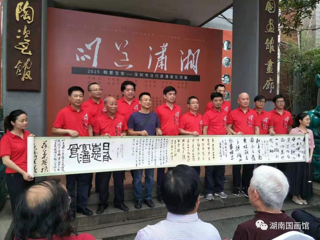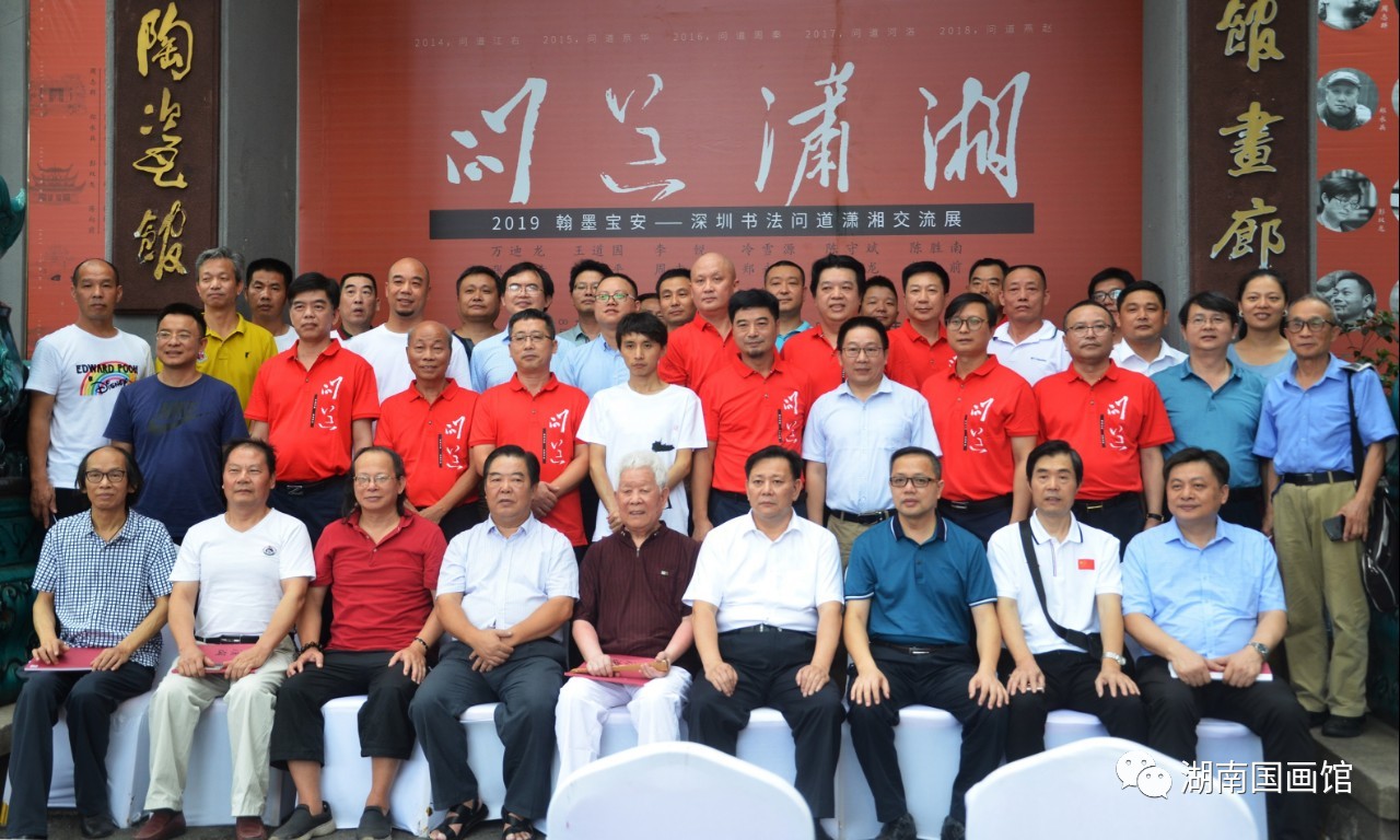 此次“問道瀟湘”是由深圳寶安書社、深圳寶安公共文化服務(wù)中心策劃的品牌活動(dòng),是繼問道江右、問道京華、問道周秦、問道河洛、問道燕趙之后的第六次“問道”活動(dòng),旨在帶上作品,通過展覽和交流,虛心請教,增進(jìn)交流。展覽展出了王道國、萬迪龍、陳勝南、李銳、張琦、張綏平、鄭永兵、冷雪源、周志群、陳守斌、彭雙龍、蔣向前12位深圳書法家的100多幅書法精品,涵蓋篆、隸、楷、行、草、篆刻,氣象正大、功力深厚、風(fēng)格多樣、各有專長,既有切合時(shí)政的政治主題,也有自撰詩詞聯(lián)句和題跋作品;既有湖湘歷史題材佳作,也有深圳本土題材作品;既有丈二巨制,又有平尺小品。展覽的亮點(diǎn)是主展廳的九件丈二巨幅作品,從《不忘初心》到《春天的故事》,從《岳陽樓記》到王冕《墨梅》,筆力沉雄,氣象博大,受到與會(huì)專家和觀眾的好評(píng)!