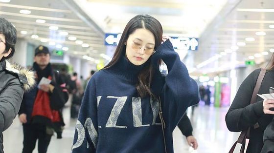 李沁高領(lǐng)毛衣 戴茶色墨鏡溫暖時尚