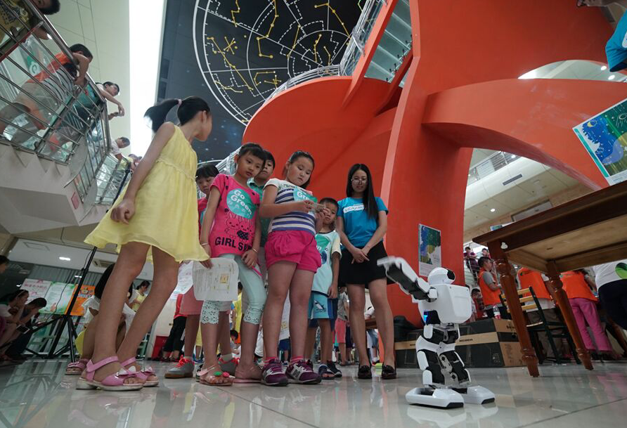 在春晚上舞臺上跳舞的機器人,相信大家依然記憶猶新。而在當(dāng)天的活動中,也有兩臺跳舞機器人也受到了小朋友們的追捧。金雞獨立、俯臥撐、翻筋斗,各種高難度的動作統(tǒng)統(tǒng)難不倒這兩臺動作靈活的機器人。據(jù)了解,這兩臺機器人除了能自動跳舞外,還能通過遙控器,在小朋友的操作下做出各種高難度動作。樂聚(深圳)機器人技術(shù)有限公司的工作人員表示,通過手動操控機器人不僅鍛煉了孩子的想象力和動手能力,啟迪與激發(fā)了他們的科技創(chuàng)新意識和興趣,還讓孩子們體驗了科技的魅力。