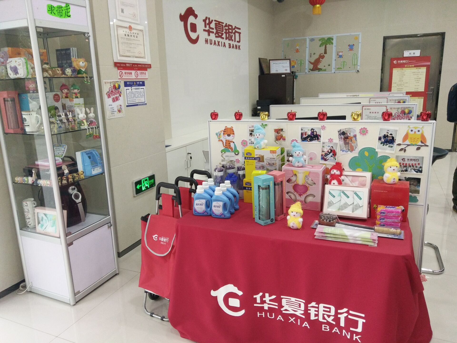 這是銀行?在記者走進(jìn)這家銀行的門店時(shí),有些遲疑。進(jìn)門口陳列著一件件精美的禮品,“求帶走”的小標(biāo)語,閃閃惹人愛,環(huán)顧下四周,確實(shí)是銀行的辦公柜臺,網(wǎng)點(diǎn)雖小,但五臟俱全,與其說是銀行,這里的整體布局更像是一個(gè)溫馨、充滿童趣的小家。