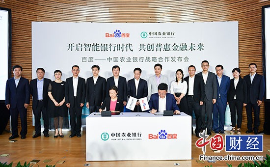 中國網(wǎng)財經(jīng)6月20日訊 20日,中國農(nóng)業(yè)銀行與百度戰(zhàn)略合作簽約儀式在北京舉行。據(jù)悉,雙方將圍繞金融科技領(lǐng)域開展全面合作,并將共建“金融科技聯(lián)合實驗室”,在智能金融服務(wù)領(lǐng)域進(jìn)行深度研究。