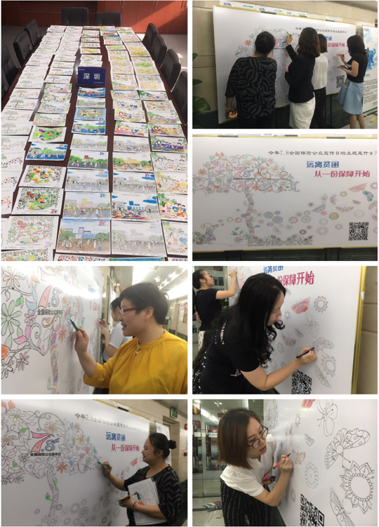 深圳分公司在職場大廳設置了填色墻,供員工及客戶共同上色,為生活添色彩。同時,深圳分公司面向廣大員工及客戶發(fā)放大量填色卡,舉辦填色贏獎品活動,深受民眾的喜愛與好評。
