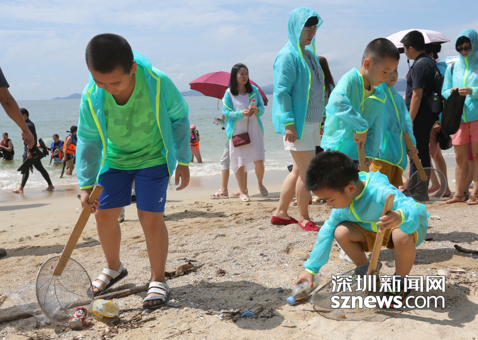 在當(dāng)天的活動(dòng)中,小朋友們除了學(xué)習(xí)海洋生物知識外,還在義工的帶領(lǐng)下,對梅沙一處公共沙灘進(jìn)行了一次公益大清潔,踐行自己的環(huán)保公益誓言。小朋友們和家長一起合作,通過工具將海草、啤酒瓶、塑料袋等垃圾撿走。不到一個(gè)小時(shí),便將2公里的沙灘清理干凈。