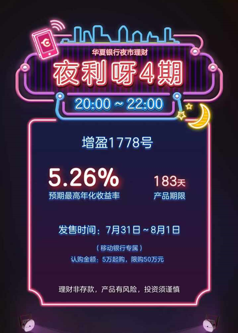 盛夏一到,夜市開(kāi)始紅火,銀行也來(lái)湊熱鬧。華夏銀行推出預(yù)期年化收益率5.26%的“夜市”理財(cái)產(chǎn)品。