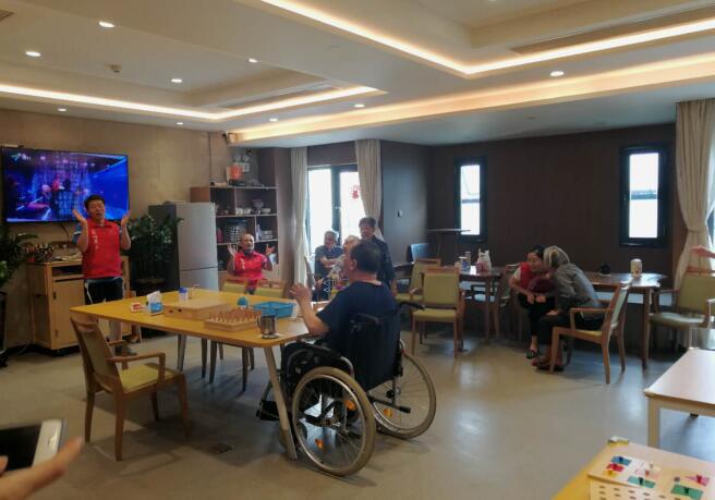 交行相關工作人員在前期與養(yǎng)護中心的護工溝通了解到,養(yǎng)護中心的老人們生活無憂,吃喝無愁,更需要的是陪伴與精神慰藉。在了解情況后,交行的義工們紛紛來到老人身邊,陪老人們聊天,詢問老人的生活狀況,并為老人們現(xiàn)場表演歌舞節(jié)目,一首《東方紅》大合唱更是讓老人們開心地一起歌唱。