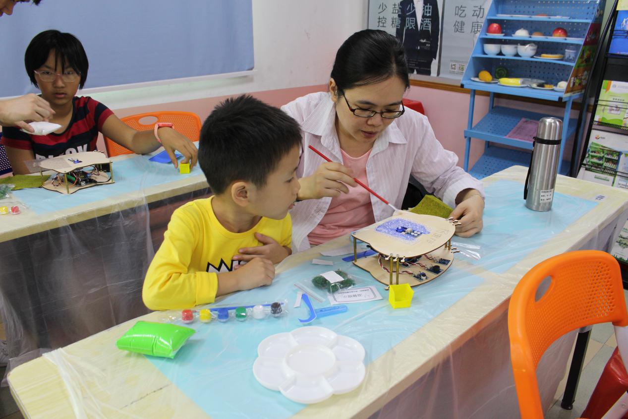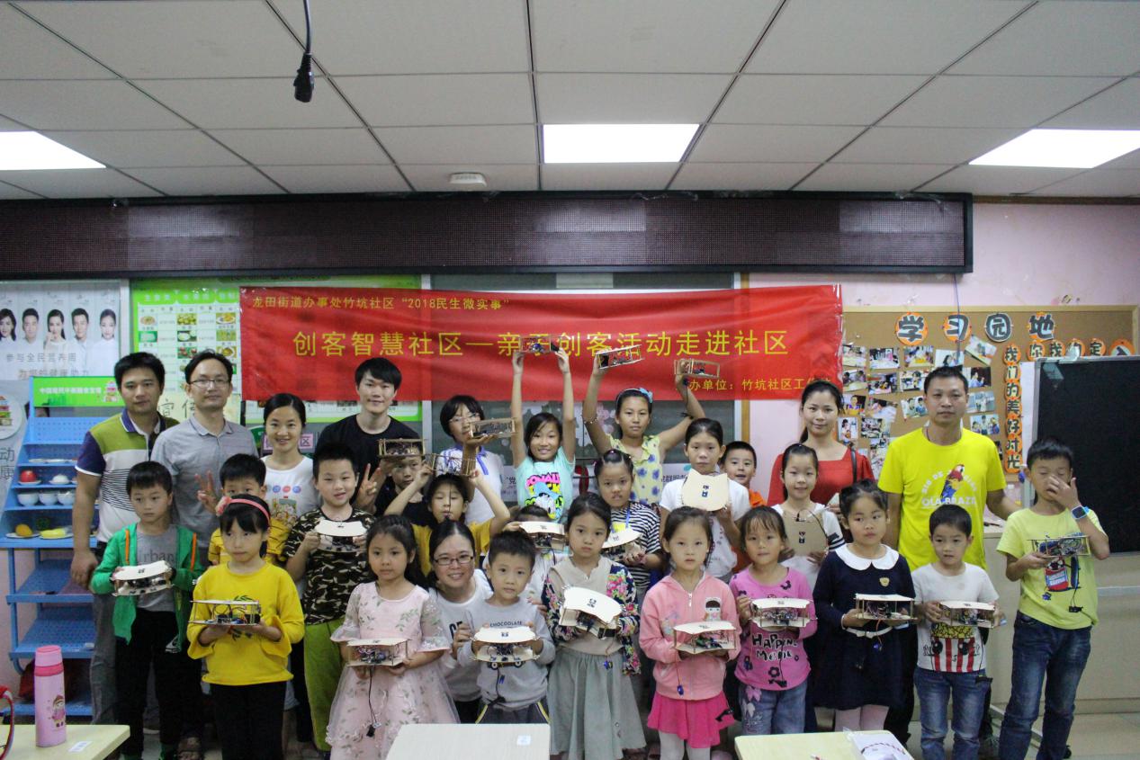 “創(chuàng)客智慧社區(qū)”親子創(chuàng)客活動項(xiàng)目的通過親子間互動互助,共同完成作品深入的體驗(yàn)科技創(chuàng)新的魅力,改善家庭親子關(guān)系,提升父母對孩子的引導(dǎo),提高家庭教育的質(zhì)量,豐富社區(qū)居民的科技活動,展現(xiàn)“人與科技”的關(guān)系及未來生活發(fā)展的思考,讓青少年持續(xù)擁有探索創(chuàng)造的能力。