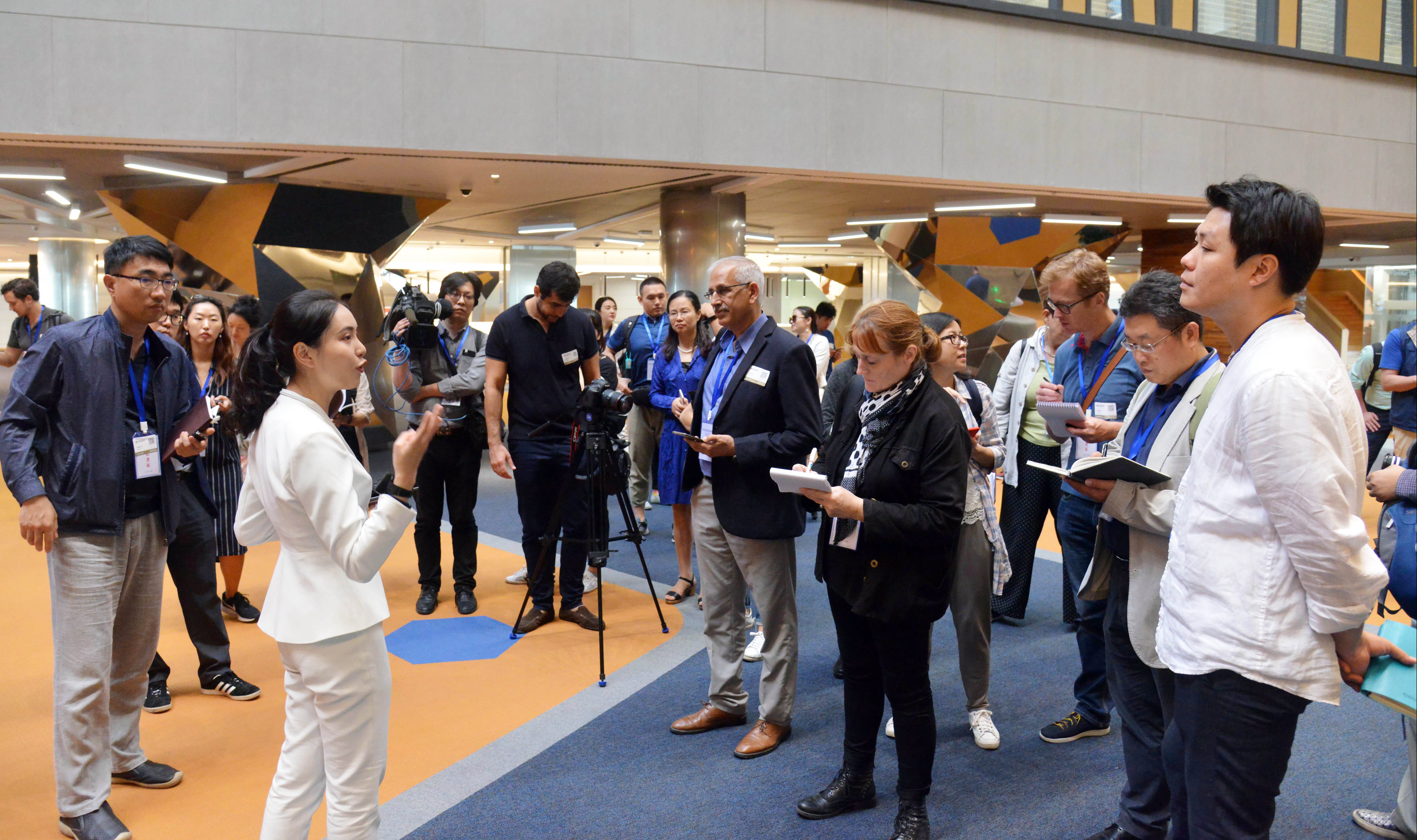 世界知名媒體記者在騰訊濱海大廈參觀采訪。