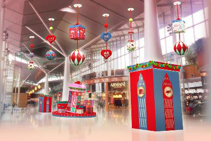 據(jù)介紹,圣誕節(jié)期間東薈城名倉店將以英國(guó)國(guó)旗上的紅藍(lán)白為主調(diào),在場(chǎng)內(nèi)掛滿十多組吊飾,各處均充滿英倫氣息。而2樓天橋位置,更將化身為倫敦街頭,有大本鐘報(bào)上八個(gè)城市的時(shí)間;傾斜的電話亭玩味十足,滿布流行藝術(shù)圖案,而顯示屏也會(huì)不斷送上圣誕祝福;還有換上圣誕新裝的英國(guó)士兵,整裝與大家互動(dòng)過圣誕。