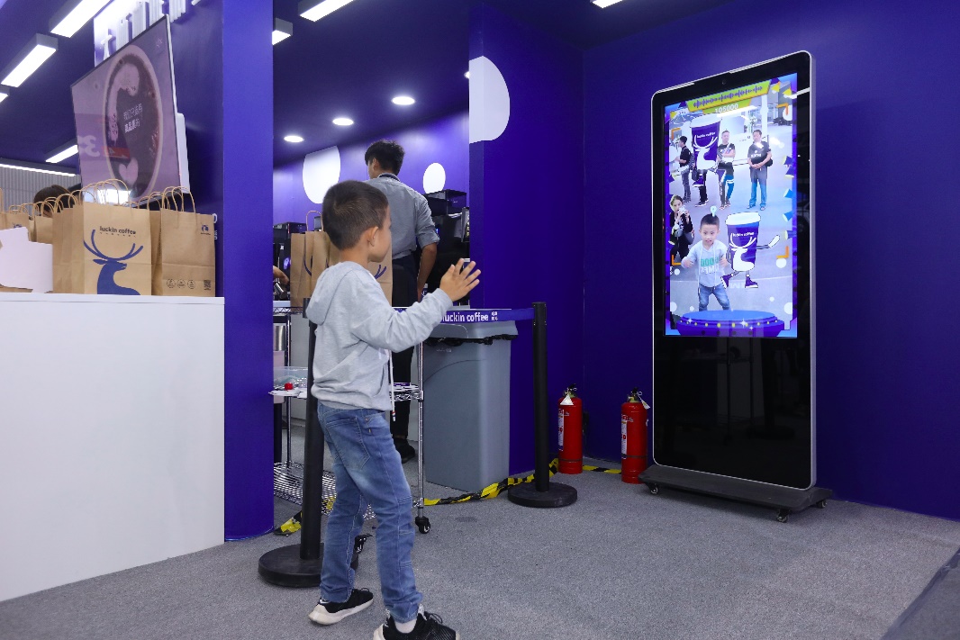 瑞幸咖啡快閃店位于琶洲會館A區(qū)3.2館2C05,在提供咖啡與飲品服務(wù)的同時(shí),現(xiàn)場還準(zhǔn)備有豐富的互動(dòng)娛樂活動(dòng),觀眾可以在互動(dòng)尬舞機(jī)前比試一番,掃碼后自動(dòng)生成短視頻,領(lǐng)取后可自行上傳到網(wǎng)上,然后領(lǐng)取瑞幸咖啡為本次廣州車展準(zhǔn)備的5.8折飲品優(yōu)惠券。