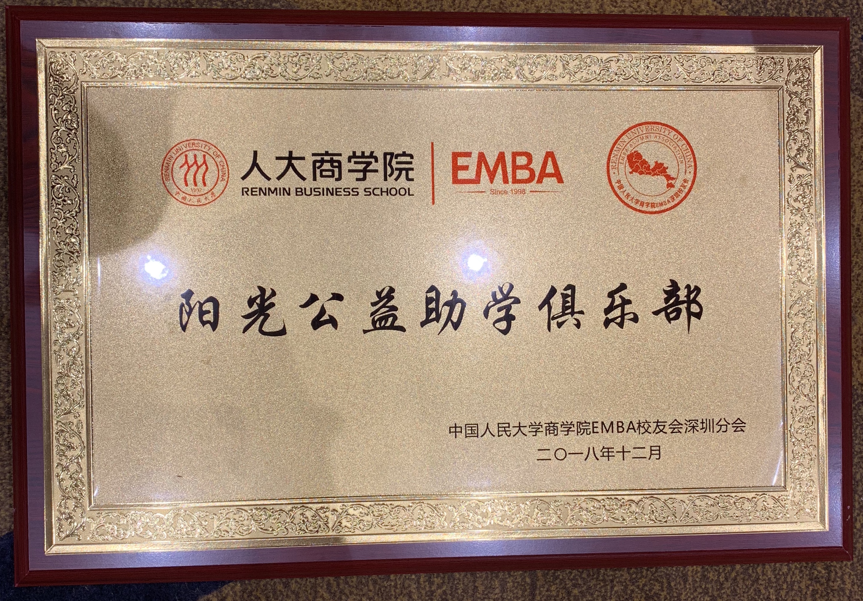 據(jù)了解,中國(guó)人民大學(xué)EMBA“陽(yáng)光公益助學(xué)俱樂部”是為了廣大熱愛公益、支持公益的人大EMBA深圳校友,踐行公益、援助偏遠(yuǎn)貧困地區(qū)學(xué)生而自愿組織成立的非盈利機(jī)構(gòu),是為人大EMBA校友打造的公益平臺(tái)。