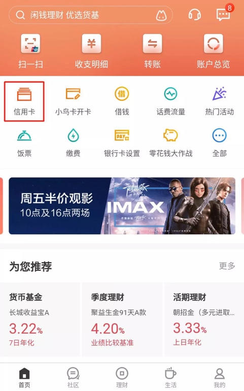 打開招商銀行App,在首頁點(diǎn)擊“信用卡”進(jìn)入信用卡界面,點(diǎn)擊“還款”根據(jù)提示即可在線還款。
