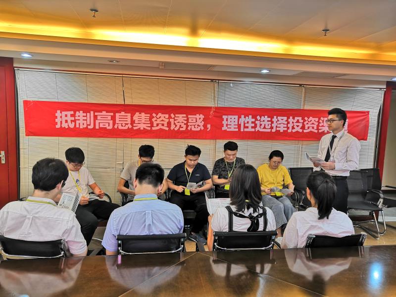 地鐵大廈支行則在深圳市銀服通企業(yè)管理咨詢有限公司舉行金融知識小講座。通過發(fā)放宣傳折頁、懸掛橫幅、現(xiàn)場講解等形式,緊緊圍繞識別抵制高息集資誘惑、做好財務(wù)規(guī)劃、選擇適當?shù)漠a(chǎn)品投資理財?shù)戎R進行講解。同時溫馨提示企業(yè)員工在辦理銀行卡、匯款、房貸還款等業(yè)務(wù)時的小竅門,獲企業(yè)員工一致好評。