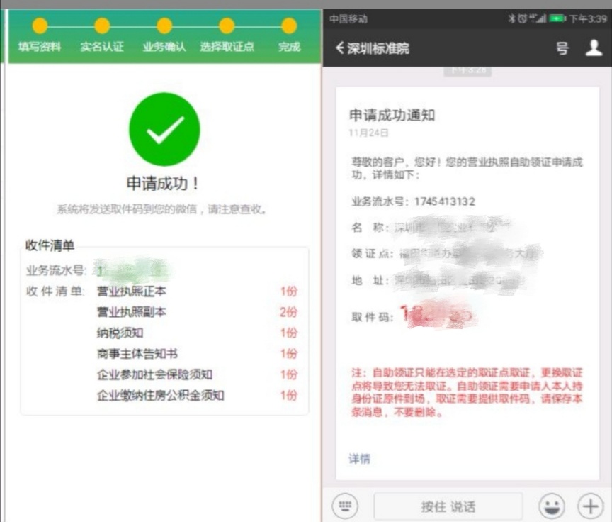 自助領(lǐng)證服務(wù)通過微信公眾號(hào)“深圳標(biāo)準(zhǔn)院”線上申請(qǐng),自助機(jī)線下“刷臉”領(lǐng)證的方式,30秒完成證照領(lǐng)取,方便快捷。