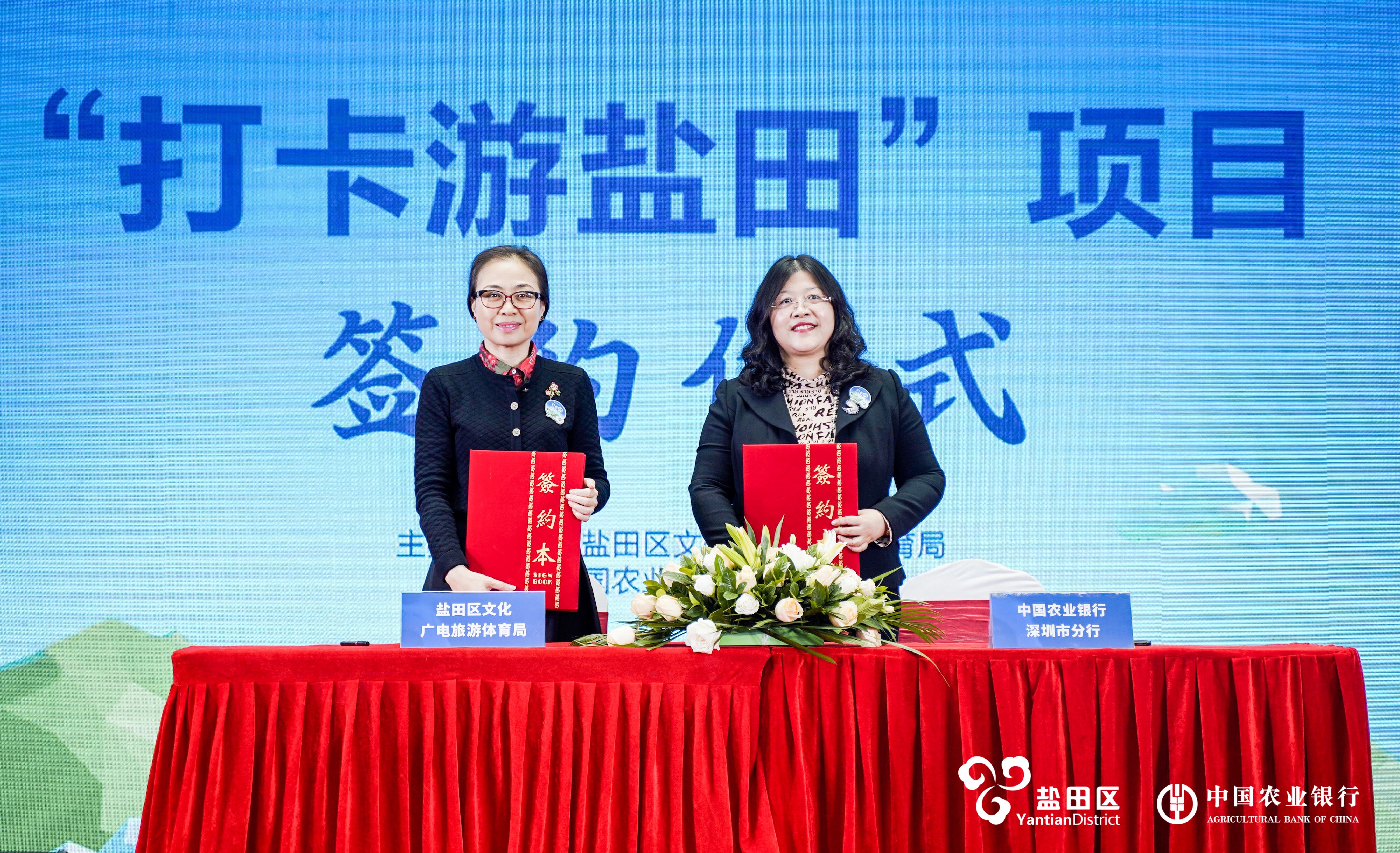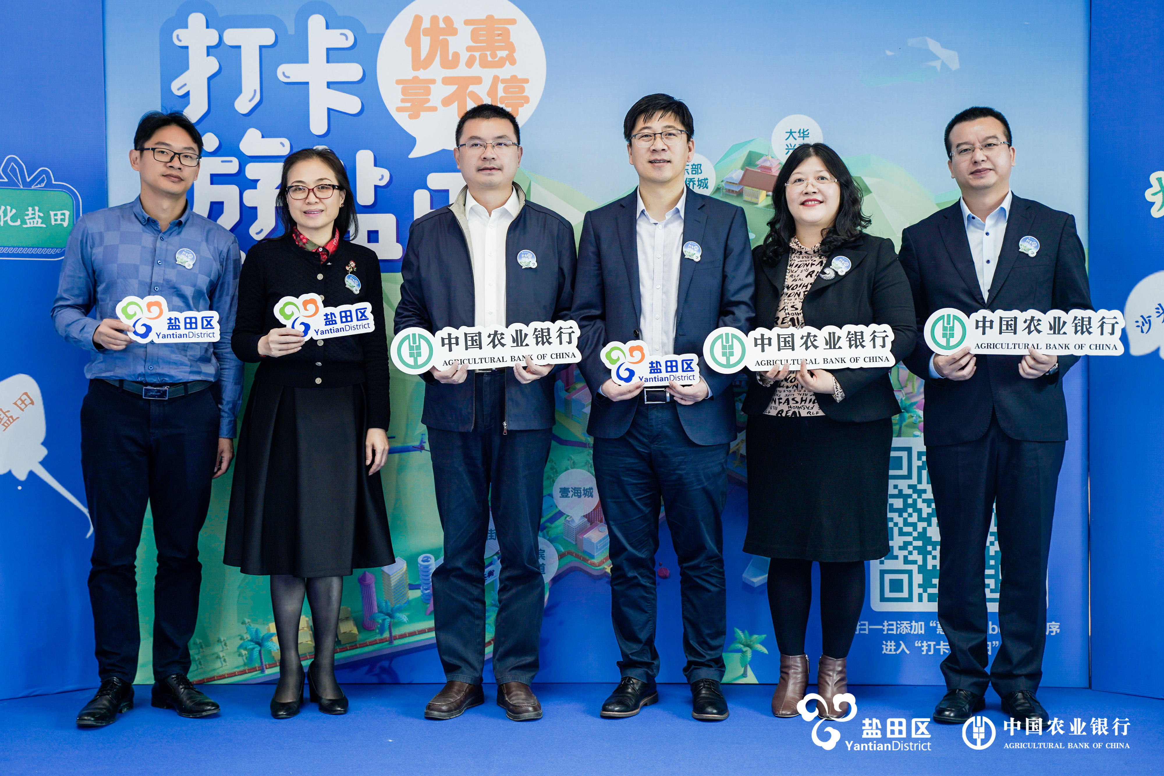 2019年12月17日上午,由深圳市鹽田區(qū)文化廣電旅游體育局主辦,農(nóng)行深圳分行承辦的鹽田區(qū)第二期“打卡游鹽田”活動發(fā)布會在鹽田ONE MALL商場舉行。鹽田區(qū)副區(qū)長羅毅、鹽田區(qū)文化廣電旅游體育局局長彭潔、鹽田區(qū)文化廣電旅游體育局副局長王智華、農(nóng)行深圳分行副行長魏秉全、農(nóng)行深圳分行信用卡中心總經(jīng)理張珂等相關(guān)領(lǐng)導(dǎo)出席發(fā)布會。會上,鹽田區(qū)副區(qū)長羅毅、農(nóng)行深圳分行副行長魏秉全先后做開幕致辭與活動方案,鹽田區(qū)文化廣電旅游體育局局長彭潔、農(nóng)行深圳分行信用卡中心總經(jīng)理張珂現(xiàn)場簽署了《鹽田區(qū)第二期“打卡游鹽田”活動合作協(xié)議》,宣告活動正式落地。