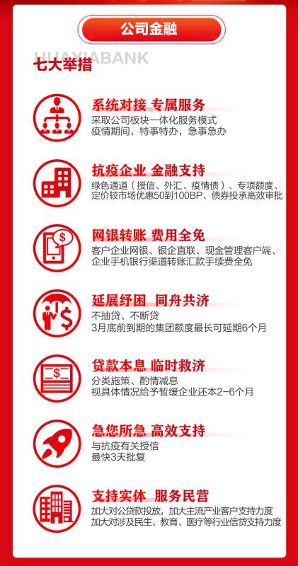 1、個貸客戶“三優(yōu)”服務:貸款執(zhí)行優(yōu)惠利率。參加疫情防控救援的醫(yī)護人員,在疫情結束后2個月內(nèi)向華夏銀行深圳分行遞交相關證明材料,已辦理的住房按揭貸款最高減免2個月利息;已辦理的消費貸款、商用房貸款執(zhí)行優(yōu)惠利率。參加疫情防控救援的醫(yī)護人員、部隊官兵、公安干警或政府工作人員,新申請的貸款開辟綠色通道并給予利率優(yōu)惠。