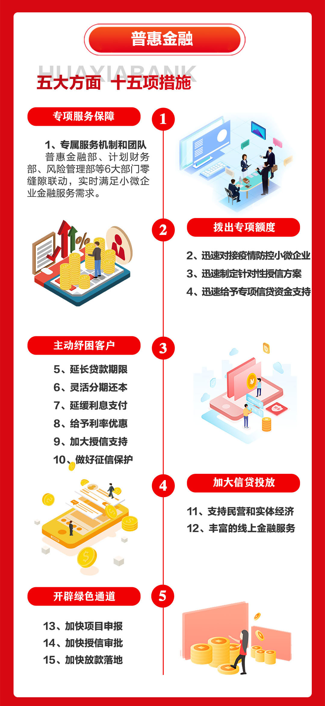 二、普惠金融服務,五大方面十五項措施,金融服務不打折扣