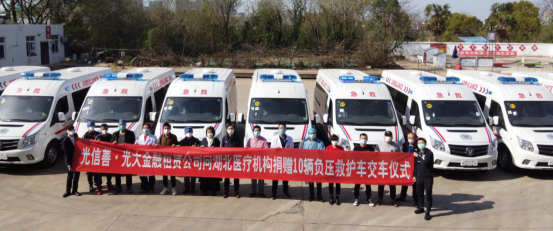 深圳新聞網(wǎng)3月21日訊 為鞏固抗擊疫情阻擊戰(zhàn)戰(zhàn)果,奪取疫情防控全面勝利,3月20日下午,光大金融租賃股份有限公司(以下簡稱“光大租賃”)向湖北醫(yī)療機(jī)構(gòu)捐贈價值400萬元的10輛負(fù)壓救護(hù)車交車儀式在湖北武漢舉行。此次捐贈,光大租賃、光大銀行武漢分行和光大信托三家單位聯(lián)合“作戰(zhàn)”、爭分奪秒、“光速戰(zhàn)疫”,僅用時不到24個小時就將負(fù)壓救護(hù)車從南京生產(chǎn)廠家下線運(yùn)抵武漢交付。
