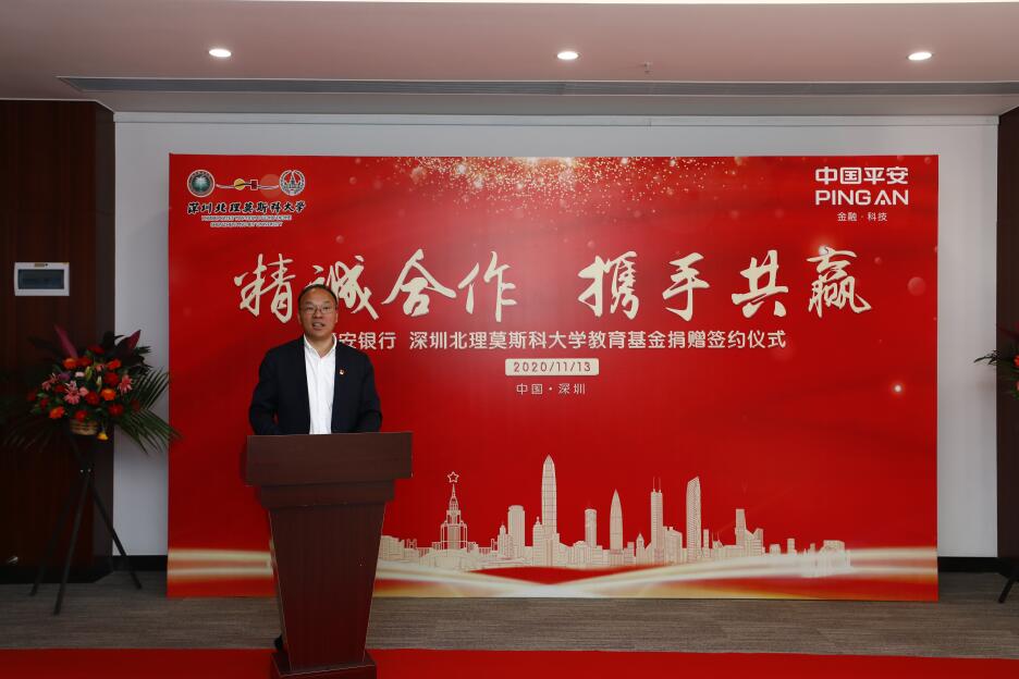 此外,朱迪儉書(shū)記介紹了基金會(huì)的成立情況,感謝深圳市政府、深圳市教育局、民政局和各相關(guān)部門(mén)、企業(yè)對(duì)基金會(huì)成立給予的關(guān)心與支持。他表示,學(xué)校在辦學(xué)三方的通力協(xié)作和社會(huì)各界的大力支持下,各項(xiàng)事業(yè)得到了快速發(fā)展。希望通過(guò)基金會(huì)加強(qiáng)學(xué)校與社會(huì)各界的廣泛聯(lián)系與合作,增強(qiáng)學(xué)校辦學(xué)活力,提高辦學(xué)質(zhì)量和效益,更好服務(wù)“一帶一路”國(guó)家戰(zhàn)略及“雙區(qū)”經(jīng)濟(jì)和社會(huì)發(fā)展,實(shí)現(xiàn)多方共贏。同時(shí)朱迪儉書(shū)記代表學(xué)校向平安銀行此次設(shè)立教育專(zhuān)項(xiàng)基金,支持深圳北理莫斯科大學(xué)教育事業(yè)發(fā)展表示感謝。他希望雙方以此為契機(jī),不斷擴(kuò)大合作和交流,攜手并進(jìn)、共創(chuàng)輝煌,共譜合作新篇章。隨后,雙方舉行了捐贈(zèng)簽約儀式。