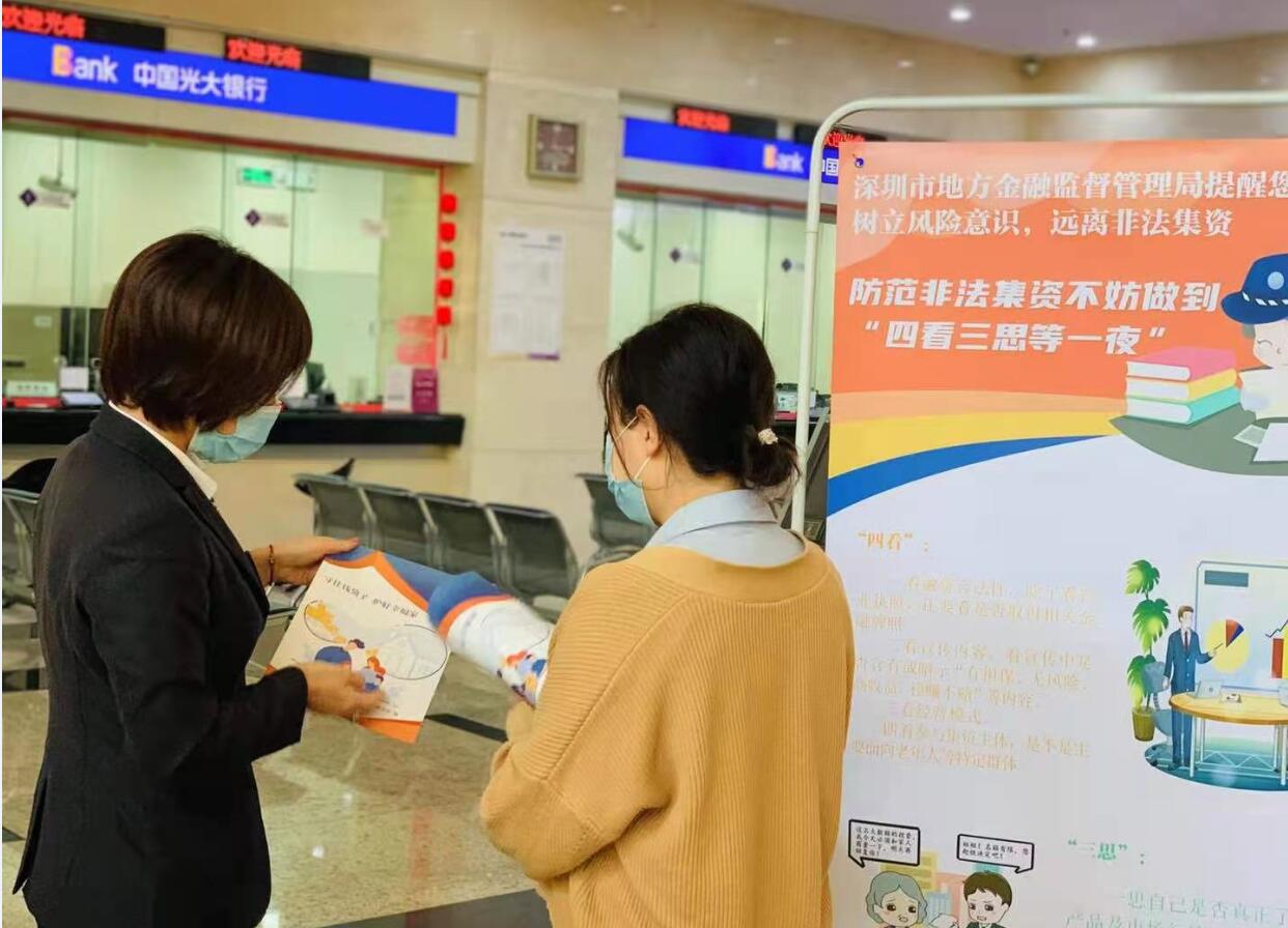 深圳新聞網(wǎng)·見圳客戶端2020年12月4日訊 近日,深圳市地方金融監(jiān)督管理局與深圳商報聯(lián)合舉辦的“守好錢袋子護(hù)好幸福家”防范非法集資巡展走進(jìn)光大銀行深圳分行。