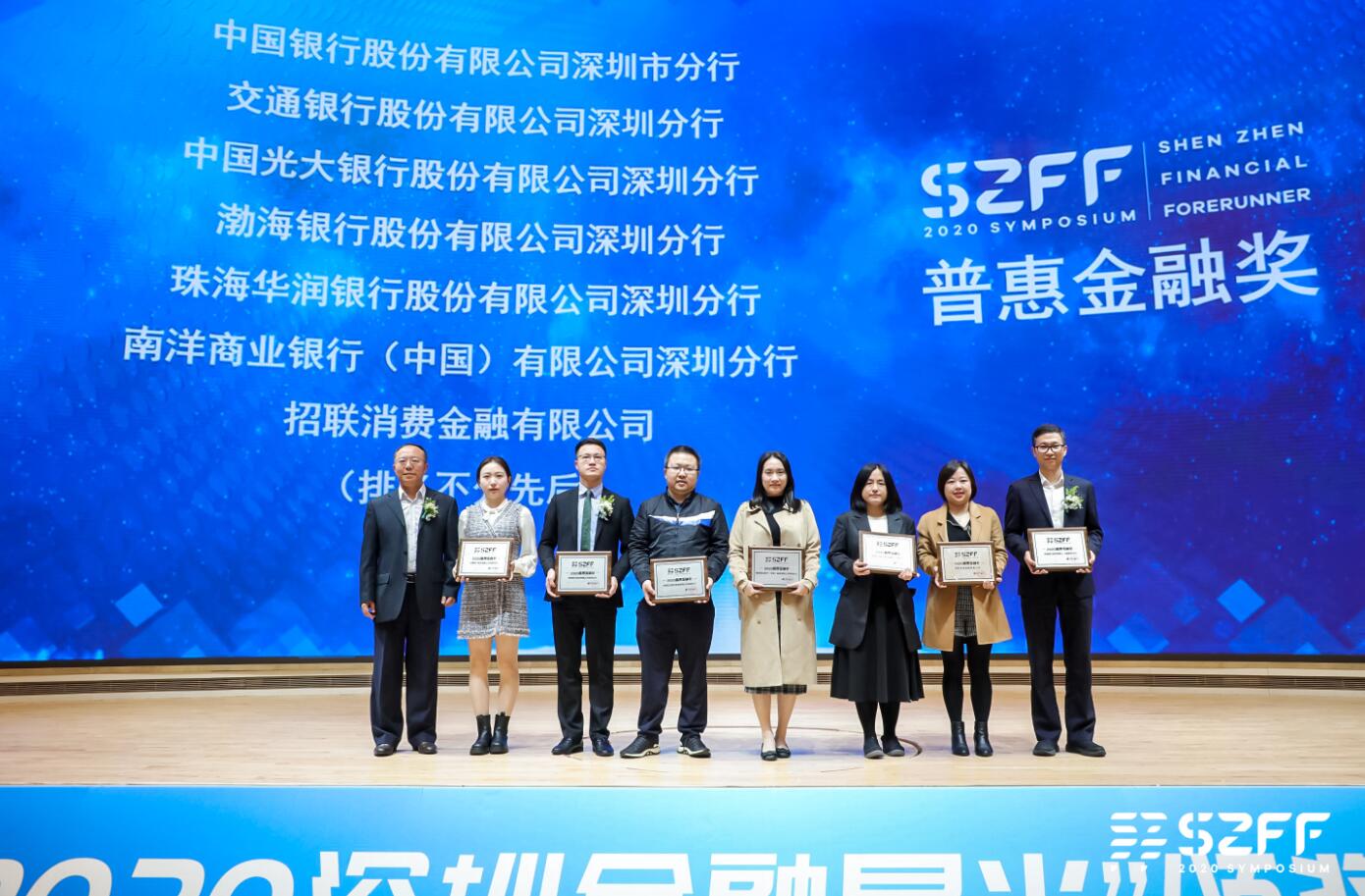 深圳新聞網(wǎng)·見圳客戶端2020年12月30日訊 日前,在由鳳凰網(wǎng)廣東、深圳市金融穩(wěn)定發(fā)展研究院、深圳市銀行業(yè)協(xié)會(huì)、深圳市保險(xiǎn)同業(yè)公會(huì)攜手舉辦“2020深圳金融星光”頒獎(jiǎng)盛典暨“新?lián)?dāng)·深圳金融業(yè)先行示范創(chuàng)新發(fā)展”研討會(huì)(簡稱2020SZFF大會(huì))活動(dòng)中,光大銀行深圳分行摘得2020杰出貢獻(xiàn)獎(jiǎng)、普惠金融獎(jiǎng)、最佳銀行服務(wù)獎(jiǎng)三項(xiàng)大獎(jiǎng),深圳分行營業(yè)部理財(cái)經(jīng)理彭雨、龍華民塘支行個(gè)貸經(jīng)理馬小雙、信用卡業(yè)務(wù)部產(chǎn)品經(jīng)理鹿含、公司業(yè)務(wù)管理部副總經(jīng)理趙明、渠道管理/消費(fèi)者權(quán)益保護(hù)部總經(jīng)理樓蓉、辦公室品牌經(jīng)理李昕、辦公室品牌經(jīng)理沈婷等榮獲2020優(yōu)秀星光人物獎(jiǎng)和優(yōu)秀通訊員榮譽(yù)稱號(hào)。