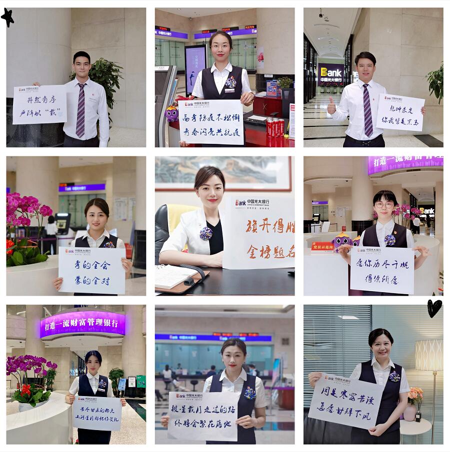 除了在網(wǎng)點提供服務(wù),光大銀行深圳分行還組織員工通過微信朋友圈及周邊宣傳等方式,為高考學(xué)子加油打氣,祝福所有的高考學(xué)子旗開得勝,金榜題名。這種主動擴大服務(wù)范圍、為高考護航的溫暖點滴,是光大銀行深圳分行貫徹落實陽光服務(wù),切實履行金融機構(gòu)社會責(zé)任的一個縮影。