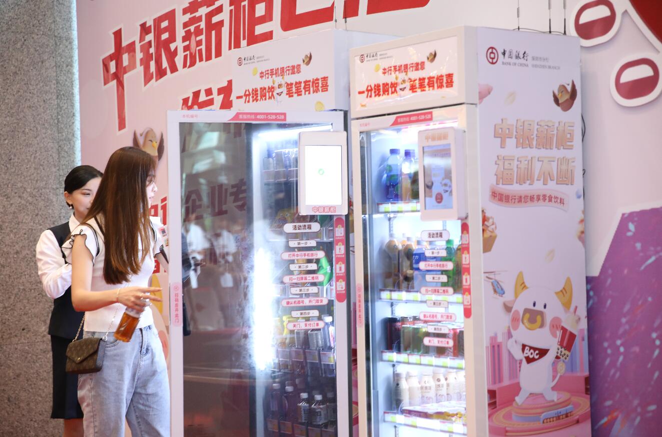現(xiàn)場雙方共同為“中銀薪柜”2.0版本揭幕。該平臺作為中行代發(fā)薪企業(yè)員工專屬定制的智能貨柜,不僅有效解決企業(yè)員工快速早晚餐、下午茶和加班餐需求,還可疊加中行福利優(yōu)惠,提升了發(fā)薪企業(yè)員工幸福感。“中銀薪柜”2.0版本具有智能化、方便快捷、用戶體驗好等特點,該平臺從外觀展示和客戶支付流程,實現(xiàn)了專屬定制和便捷服務(wù)。支付鏈路采用了先進(jìn)的AI智能商品識別算法,用戶通過中國銀行手機銀行掃碼開門后自由選擇商品,關(guān)閉柜門自動識別商品和數(shù)量并生成訂單結(jié)算,首次采用了手機銀行訂單模式的支付方式。