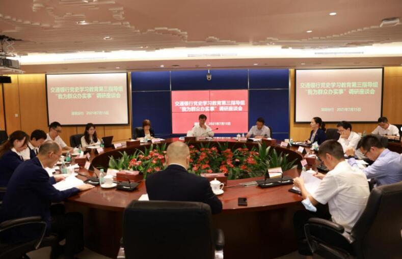 此外,交通銀行黨委黨史學(xué)習(xí)教育第三指導(dǎo)組(宣講團)與支行及部門負責(zé)人代表、黨員代表、群眾代表等干部員工圍繞分行“我為群眾辦實事”進展情況、分類指導(dǎo)工作開展情況、需要總行為基層辦實事的意見建議等內(nèi)容進行面對面調(diào)研座談,并通過個別訪談、查閱資料等方式對深圳分行黨委推進黨史學(xué)習(xí)教育進展及學(xué)習(xí)效果等情況進行精細化指導(dǎo)、督導(dǎo)。