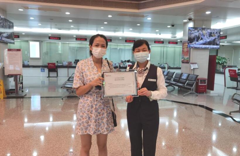 深圳中行工作人員為購買客戶頒發(fā)“深圳市地方債券柜臺首發(fā)紀(jì)念憑證”