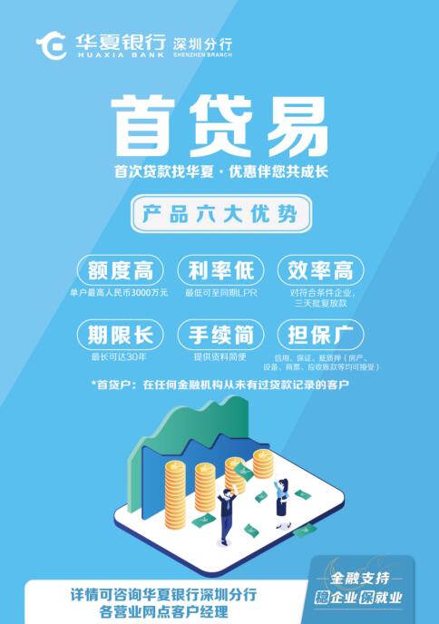 去年以來,華夏銀行深圳分行在深入社區(qū)走訪的過程中了解到小微民營企業(yè)沒有銀行授信但亟須資金支持的融資需求,針對這類客戶創(chuàng)新推出“首貸易”專屬服務,向首貸戶(是指在任何金融機構(gòu)從未有過貸款記錄的客戶)定制“首次貸款找華夏,優(yōu)惠伴您共成長”特色金融服務,給予專人專屬服務和全面優(yōu)惠政策,切實提高服務“首貸戶”能力?!笆踪J易”產(chǎn)品具備六大優(yōu)勢:“額度高”——單戶額度最高可達人民幣3000萬元;“利率低”——利率按客戶風險評級進行定價,對首貸戶予以優(yōu)惠;“效率高”——專人對接,全程跟蹤服務,對符合放款條件的企業(yè)三天批復放款;“期限長”——貸款期限最長可達30年;“手續(xù)簡”——提供資料簡便;“擔保廣”——支持信用、保證、抵質(zhì)押等多種擔保方式。截支目前,該行2021年首貸戶增長達到2019年的4倍以上。