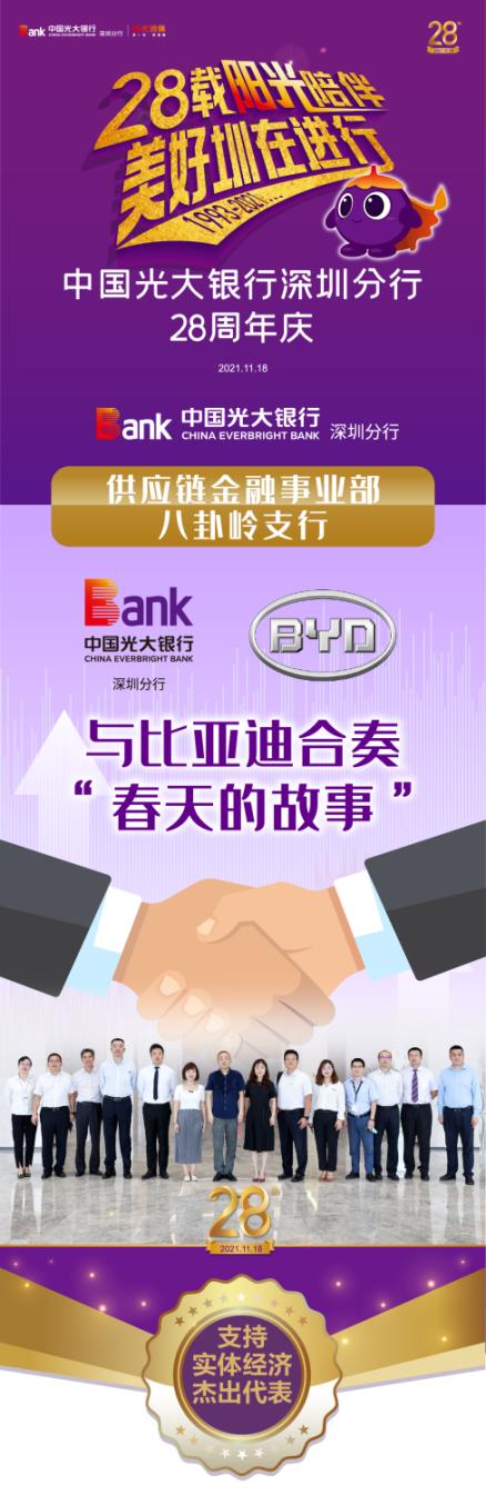 在光大銀行和比亞迪合作日漸深入的同時(shí),八卦嶺支行也迎來了發(fā)展里程碑時(shí)刻:2021年4月,深圳分行供應(yīng)鏈金融事業(yè)部成立。9月,按照分行黨委部署,供應(yīng)鏈金融事業(yè)部與八卦嶺支行合并辦公,全心全意圍繞比亞迪上下游供應(yīng)鏈做好服務(wù)。