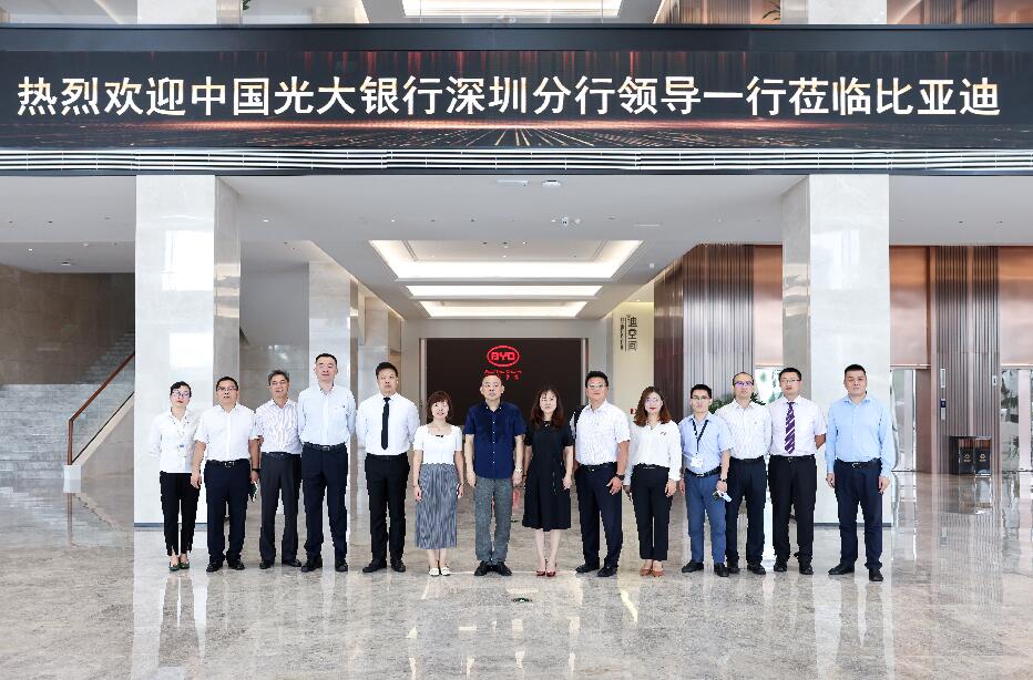 2018年12月11日,光大集團(tuán)與比亞迪在中國光大中心簽署戰(zhàn)略合作協(xié)議。次年9月,李曉鵬董事長前往深圳調(diào)研比亞迪,與比亞迪董事長兼總裁王傳福進(jìn)行工作會(huì)談,雙方合作更為密切。2021年6月9日,光大銀行深圳分行行長韓學(xué)智率隊(duì)拜訪比亞迪集團(tuán),雙方就踐行國家“創(chuàng)新、協(xié)調(diào)、綠色、開放、共享”發(fā)展理念,進(jìn)一步落實(shí)中國光大集團(tuán)與比亞迪集團(tuán)重要戰(zhàn)略合作協(xié)議,深化綜合金融服務(wù),加強(qiáng)協(xié)同聯(lián)動(dòng)發(fā)展等方面進(jìn)行座談,為下一步光大銀行與比亞迪集團(tuán)的合作打下堅(jiān)實(shí)的基礎(chǔ)。