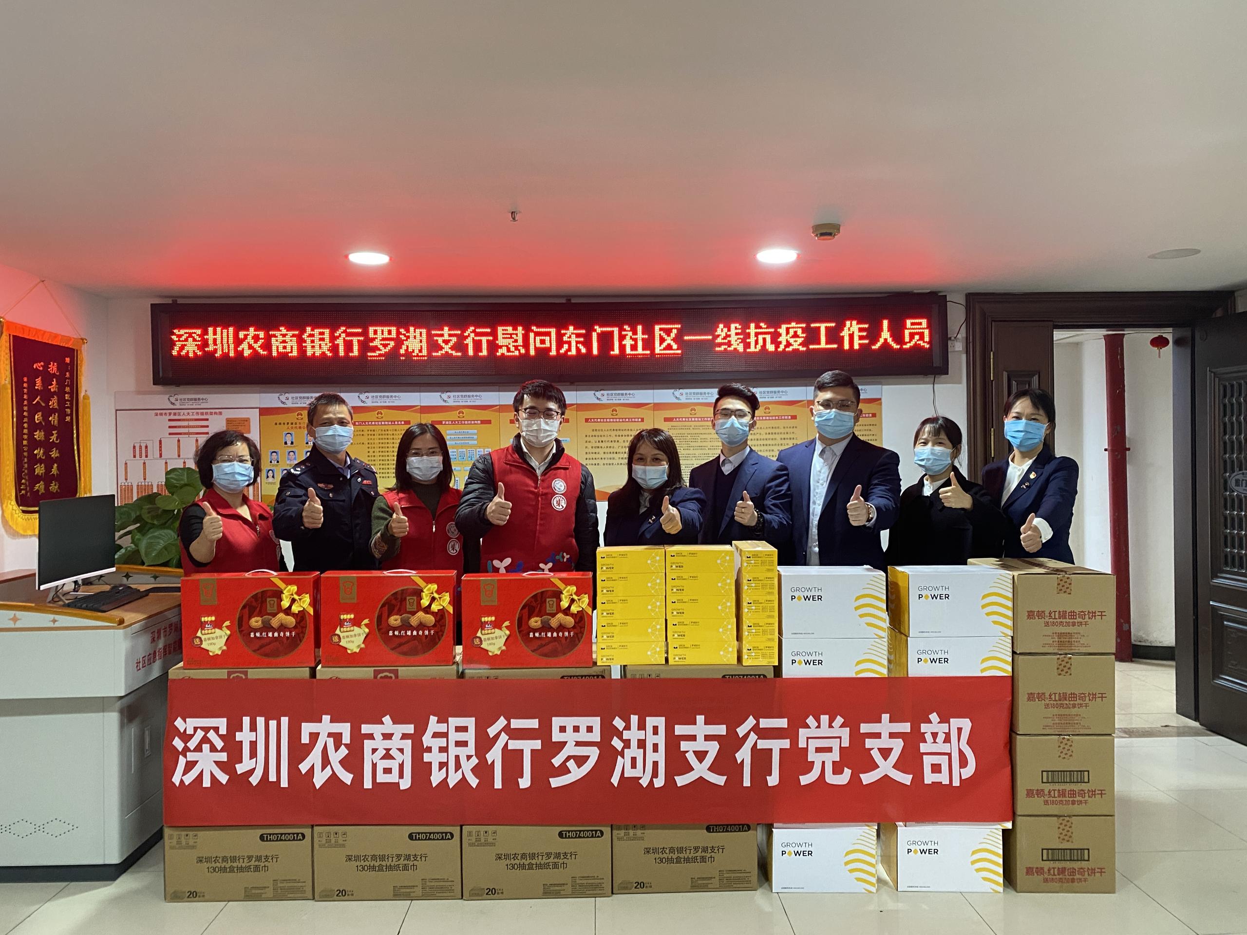深圳新聞網(wǎng)2022年1月15日訊(記者 朱琳 通訊員 張保英 凌環(huán))臨近年關(guān),深圳再次拉響疫情防控警報(bào),深圳各區(qū)緊急開(kāi)展各項(xiàng)工作,特別是此次出現(xiàn)較多疫情病例的羅湖區(qū)更是每日一測(cè)。作為一直以來(lái)服務(wù)當(dāng)?shù)氐谋就零y行,為貫徹落實(shí)市政府的防疫要求,積極響應(yīng)號(hào)召,深圳農(nóng)商銀行羅湖支行在總行的統(tǒng)一部署下,充分發(fā)揮網(wǎng)點(diǎn)深入社區(qū)的特性,急防疫之所急,送溫暖捐物資,為社區(qū)疫情防控送上綿薄之力。