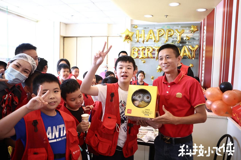 值得一提的是,成長營第二天還迎來了一位“小飛俠”的生日,在午飯間隙,孩子們一同在麥當(dāng)勞餐廳給這位小壽星唱起了生日歌,為他送上生日祝福。