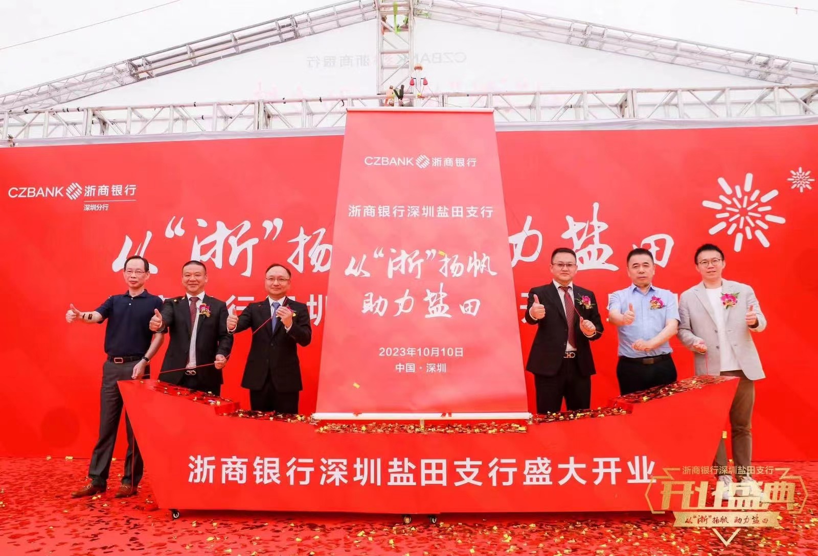 深圳新聞網(wǎng)2023年10月10日訊(記者 朱琳 通訊員 劉璇)10月10日,浙商銀行深圳鹽田支行舉辦了“從浙揚(yáng)帆,助力鹽田”開業(yè)慶典。鹽田區(qū)人民政府副區(qū)長(zhǎng)周建軍,鹽田區(qū)工業(yè)和信息化局局長(zhǎng)汪大鵬,浙商銀行深圳分行黨委書記、行長(zhǎng)樓瞿華,浙商銀行深圳分行黨委委員、紀(jì)委書記、風(fēng)險(xiǎn)監(jiān)控官郭維奇,華南城控股集團(tuán)執(zhí)行董事覃文忠,浙商銀行深圳鹽田支行行長(zhǎng)葉藝華以及鹽田發(fā)展改革局、鹽田區(qū)科技創(chuàng)新局、鹽田區(qū)財(cái)政局等機(jī)構(gòu)負(fù)責(zé)人、企業(yè)商會(huì)代表60余人出席。
